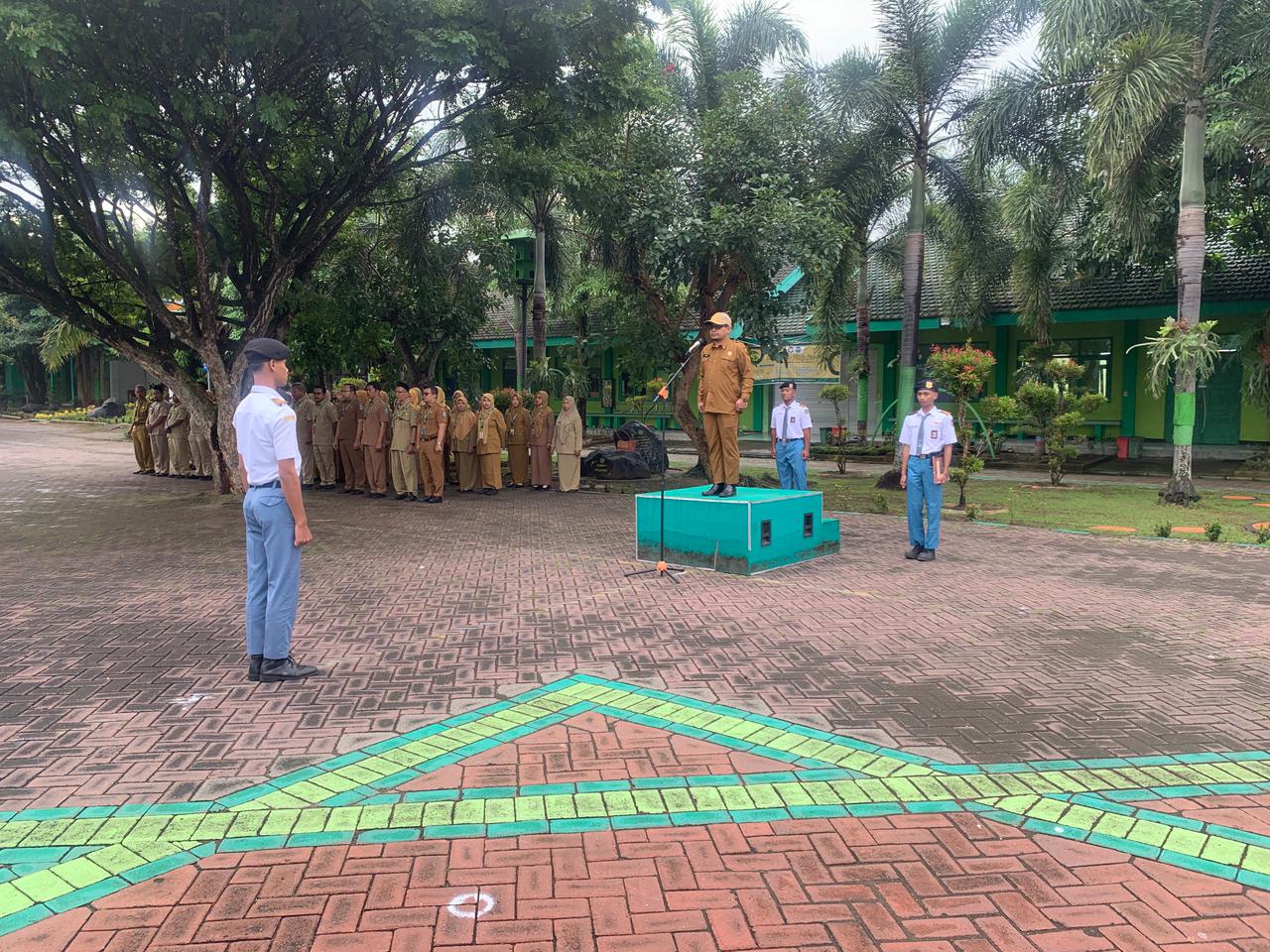 Kegiatan diawali dengan Upacara Bendera yang berlangsung khidmat di lapangan sekolah. Upacara ini menjadi simbol dimulainya kembali aktivitas pembelajaran setelah masa libur, sekaligus menanamkan nilai disiplin, nasionalisme, dan tanggung jawab kepada seluruh peserta didik. Barisan siswa tampak rapi, mencerminkan kesiapan mereka untuk kembali menimba ilmu dan meraih prestasi.
